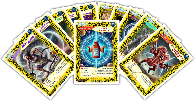 Build your BEAST army and battle your friends. Combine Spells and Weapons to improve the strength of your favourite Monsters to defeat your foes in a great fun new Trading Card Game. Discover the craziest Beasts and make the most of your quiver of add-ons! Invite your friends and lead your Monsters into battle in Brody’s BEASTS!